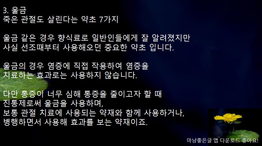 오늘 마냥좋은글에서는 죽은관절도 살린다는 약초에