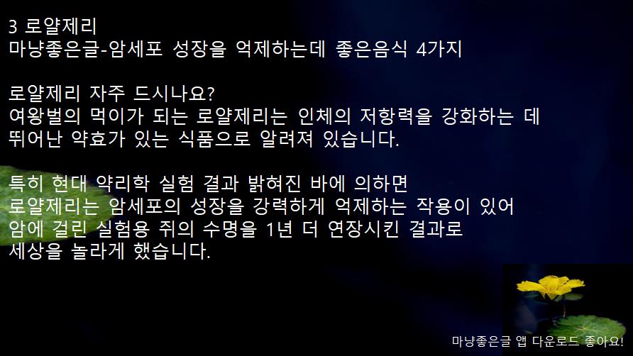 마냥좋은글-암세포 성장을 억제하는데 좋은음식 4가지